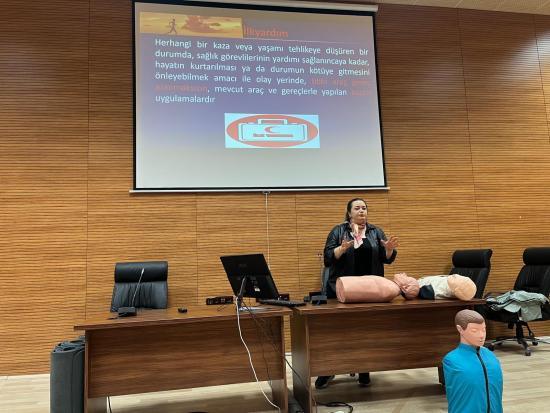 Ümiveritemiz Sağlık Kültür ve Spor Daire Başkanlığı tarafından Spor Dostu Kampüs Projesi kapsamında Eğitim Fakültesi Şehit Eren Bülbül Konferans Salonunda fiziksel aktivite ve spor yapan öğrenci ve personele yönelik olarak Üniversitemiz Semra ve Vefa Küçük Sağlık Bilimleri Fakültesi Dr. Öğr. Üyesi Nilay ÇAKICI tarafından İlk Yardım Kursu düzenlendi.